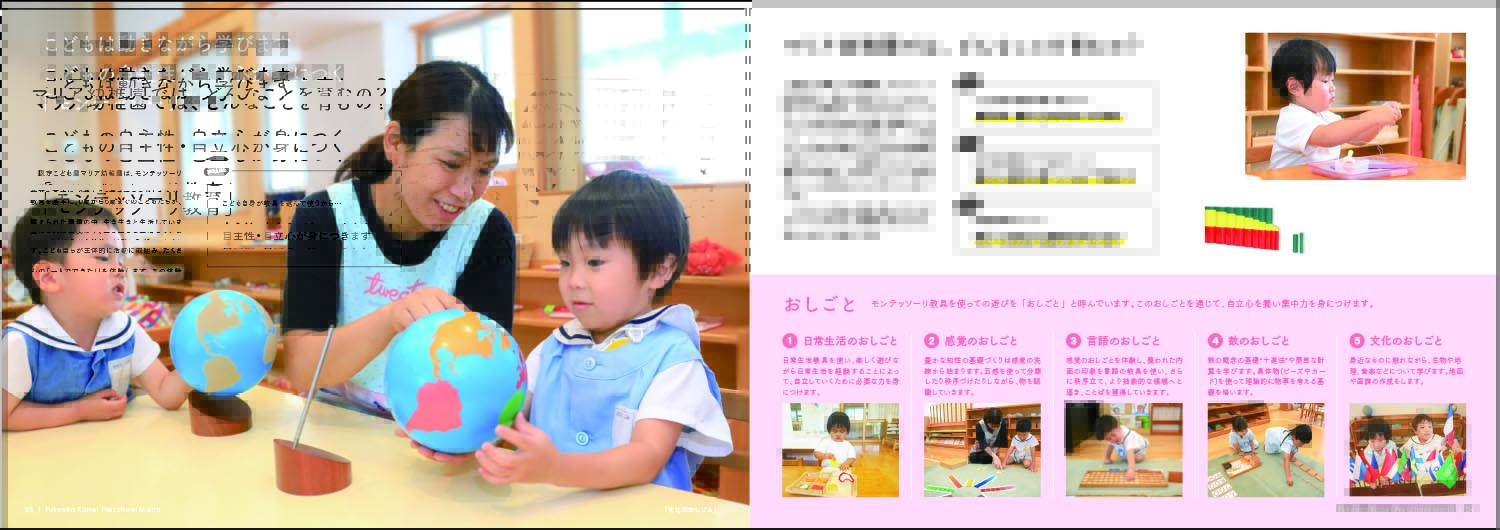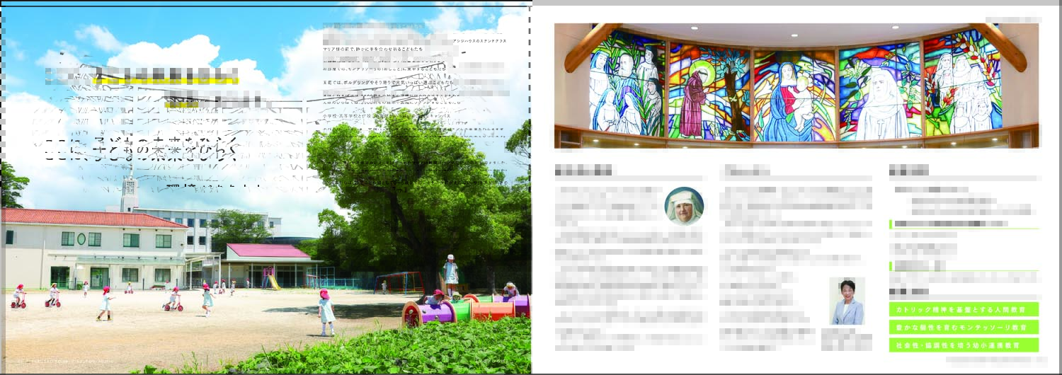 認定こども園マリア幼稚園様の園案内パンフレットを制作しました。A4サイズ全14ページのパンフレットです。